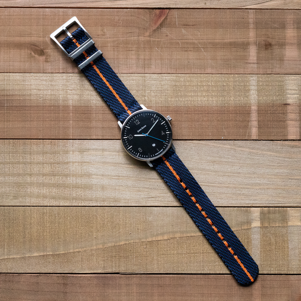 The Navy-Black-Orange 2-Piece Slanted Ballistic Watch Band in USA