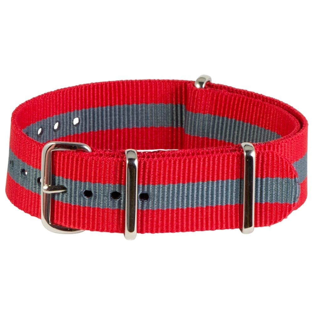 This is a red & grey Classic Ballistic strap offered in 20mm. Crafted from high-quality nylon for a durable, comfortable design! This design has authentic stainless steel hardware and a buckle for the perfect finishing touch. Length is 273mm (10.75 inches) which will fit most wrist sizes!
