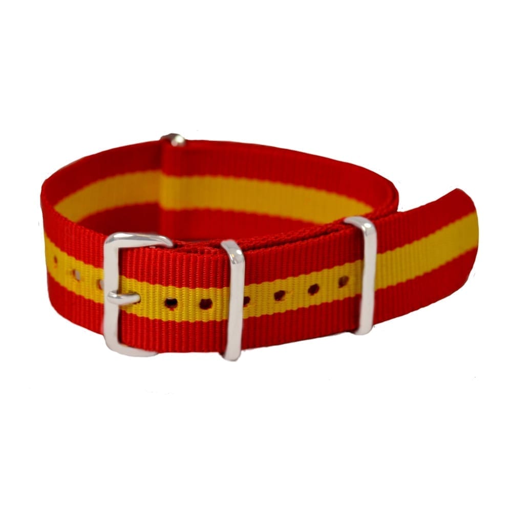 This is a red & yellow Classic Ballistic strap offered in 18mm-20mm sizes. Crafted from high-quality nylon for a durable, comfortable design! This design has authentic stainless steel hardware and a buckle for the perfect finishing touch. Length is 273mm (10.75 inches) which will fit most wrist sizes!