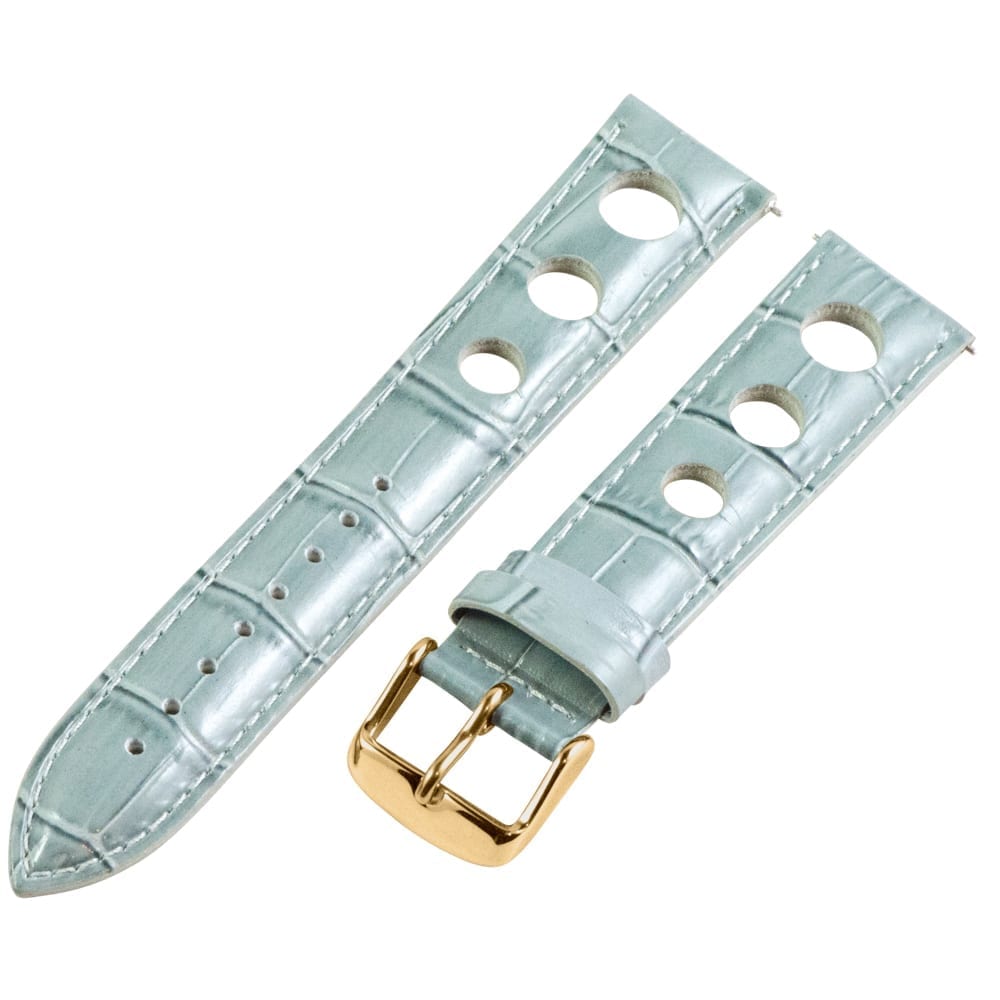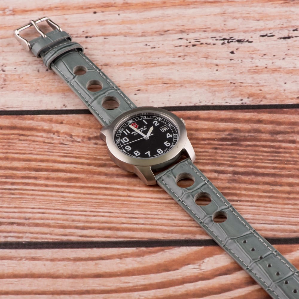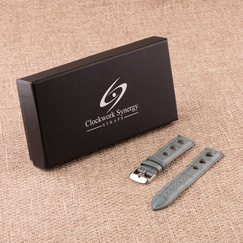 There is a longstanding connection between motorsports and the history of racing and rally watch bands. These bands, which mix style and usefulness with a unique perforated design, are reminiscent of the straps used on rally car drivers’ gloves. The White & Black Smooth Perforated Rally Bands have a sleek, athletic appearance that works well in both professional and informal settings, giving this timeless style a contemporary touch.