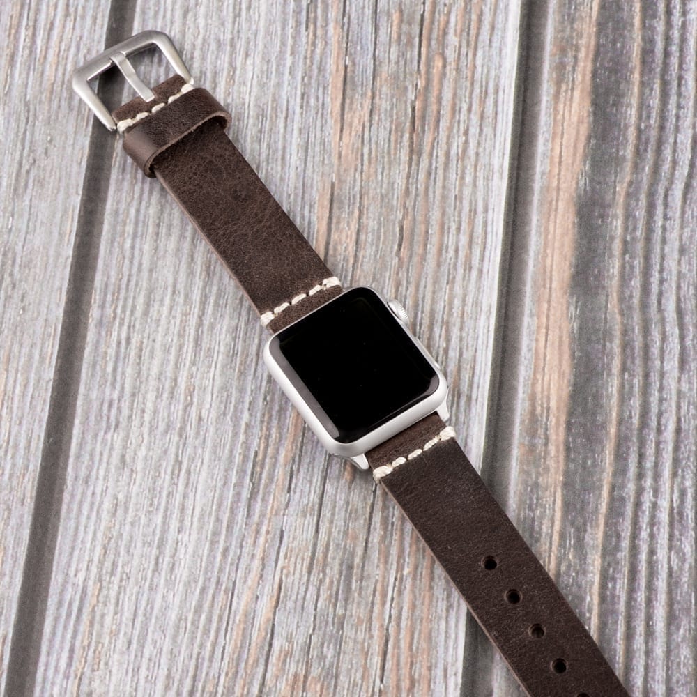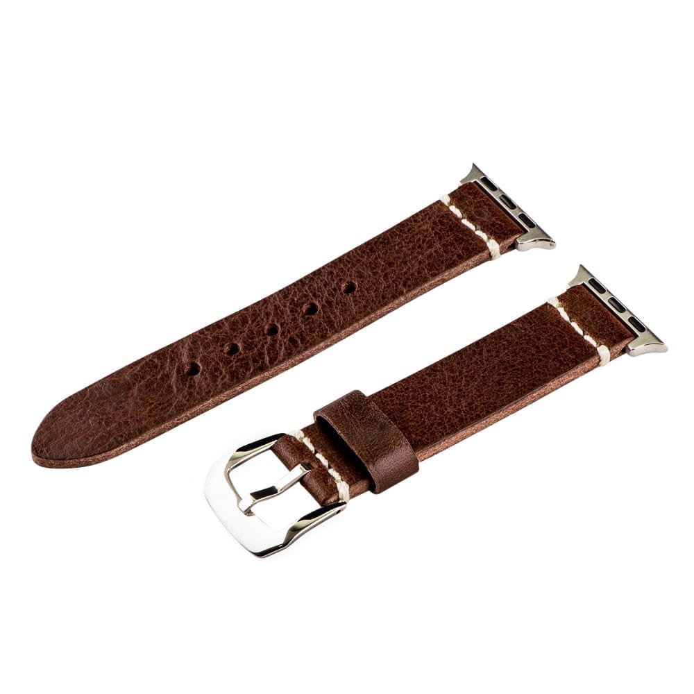 This is a pair of brown Worn Leather bands for Apple Watch® in 38mm & 42mm, a recent addition to the Dapper Collection here at Clockwork Synergy. They are crafted with 100% genuine leather which makes for a comfortable wrist and durable watch bands. Both bands have built-in quick release pins and compatible Apple Watch® adapters which allow for a speedy attachment. The adapters can be used with ANY set of watch bands that take quick release pins!