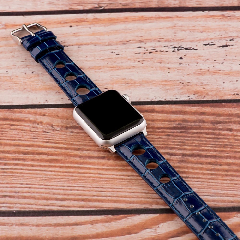 Navy 3-hole Croco Rally Bands for Apple Watch®